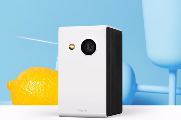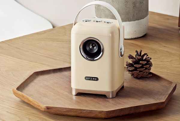 小火投影S10小巧可爱,远看有一丢丢小黄人的样子,采用了圆滑的弧边设计,并且小火投影还外加了一个白色提带。根据官方发售来看,共有三个颜色可以选择,分别是动力黄、复古白和清新绿。