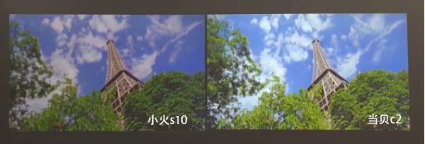 小火投影S10只有150ANSI 流明亮度,在画面表现力和清晰度上远远不如当贝C2。