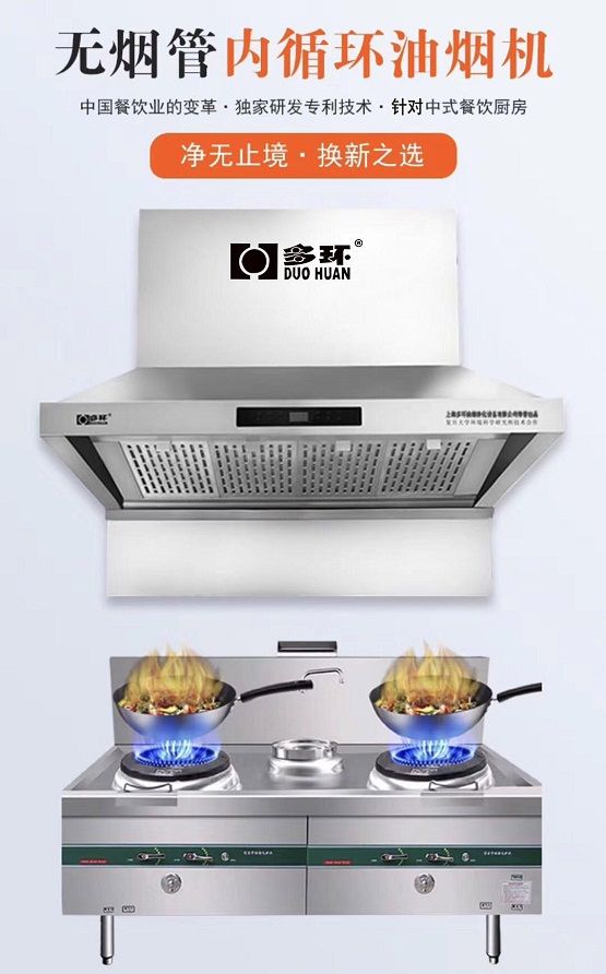 上海多环无烟管内循环技术,助力餐饮行业转型升级。多环公司的演示人员告诉观众,市场现有的酒店油烟净化机是通过安装外排管道设置户外净化器及风机的形式将烹饪油烟吸收至室外净化器进行处理并外排。市场上普遍的产品采用的是静电式处理器,该净化过程只能将混合的油烟气体中的油脂和烟颗粒物部分处理,其净化率低,它对于烹饪油烟气体中的醛类、苯类及VOC等有毒有害气体及异味并无处理能力,排放到室外往往容易受到周边住户居民的投诉;传统烟罩外加管道式的排放形式,不仅安装制作成本高,而且必须频繁清洗,否则其净化功能失效,内藏的油垢遇烹饪高温很容易引起着火爆炸,全国因净化设施引发的火灾比比皆是。多环的无烟管油烟机因为不需要外接烟管排放,安装简便,安装位置不受局限性,应用范围非常广泛,普遍应用于家庭、公寓、酒店、超市、写字楼等不同餐饮应用场景,更为无法接管排放的烹饪场所解决了难题;它具有“一机两用”的功能,当人们停止烹饪操作后,继续开启小档它将室内空气进一步的循环净化,以保持室内空气清新洁净。