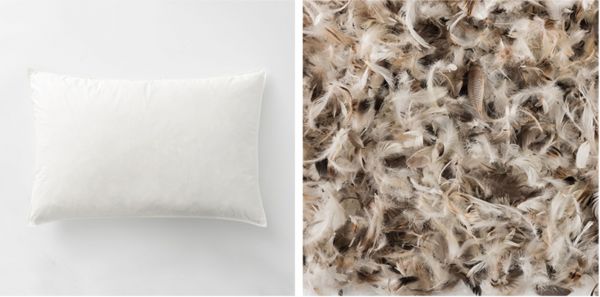 MUJI的羽毛枕,选取轻柔且凹陷少的水鸟羽毛素材,同时运用灰鸭毛和灰鸭毛绒作为填充物,打造能够柔和地包裹住后脑勺的枕头。