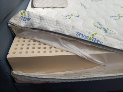 接着看乳胶的厚度。有的乳胶床垫是十几厘米厚的纯乳胶,而有的乳胶床垫是其他材料+薄薄的一层乳胶,睡起来的感觉当然不一样。东宝床垫这款纯乳胶床垫布里斯托的厚度就达到了16厘米,躺在上面直接与乳胶层接触,享受乳胶的贴身细腻。