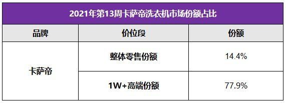 这样的探索,已经有一些品牌在尝试了。据中怡康第13周数据显示,卡萨帝洗衣机市场份额14.4%,其中万元以上份额占比77.9%。卡萨帝洗衣机用1个场景解决了从衣物搭配存储、洗净护理、到杀菌除尘的全流程护理需求,获得了近8成高端用户的选择。