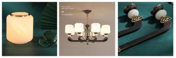 如果爱好新中式风格,茗家吊灯会是您的不二选择。以东方美学观念融入灯具设计,让人放慢脚步,享受诗意生活。纯铜的灯架使用吉利祥云元素和全黑配色,隐隐透露出一股经年的沉稳与经典,透光的玻璃灯罩在营造温馨意境的同时也更便于使用者清洁打理,纯手工艺打造的陶瓷荷叶更是在灯光的衬托下体现了荷塘月色的别样美丽。底托部分,该灯使用经封油等多道工艺处理的加厚全铜打造,尽显灯具艺术张力。