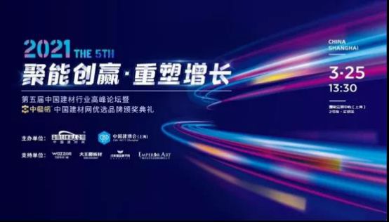 以“聚能创赢·重塑增长”为主题的第五届中国建材行业高峰论坛暨【中楹榜】2021建材网优选品牌颁奖典礼于2021年3月25日13:30在国家会展中心(上海)举行。