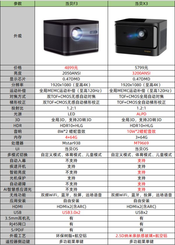 当然,因为当贝激光投影X3采用了全新的光源技术,同时采用了更新的处理器以及外观工艺,所以在价格上相比当贝F3还是高出一些的。如果预算有限并且在近期就像赶快体验投影仪超大屏幕的朋友们,可以直接选择当贝F3;而如果没有预算限制,又想体验家庭激光影院的朋友,那么这款当贝激光投影X3,一定是你的不二之选,目前当贝X3已经开启预售,将在4月15日正式开售。总体来说,当贝X3和当贝F3两款产品,均是十分值得入手的家用投影仪,各位可以根据自己的实际需要来进行选择~