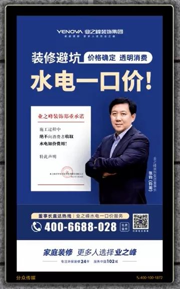 此次的亿级广告投放,成都业之峰也希望通过分众传媒的助力,带动全同行跟进“十年质保、水电无增项”等服务,让消费者成为最大的受益者。