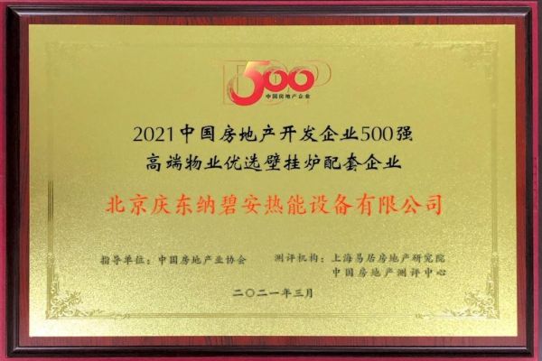 报告显示,北京庆东纳碧安热能设备有限公司获得“2021中国房地产综合实力TOP500优选高端物业配套壁挂炉供应商”,这也是庆东纳碧安连续多年蝉联改奖项。