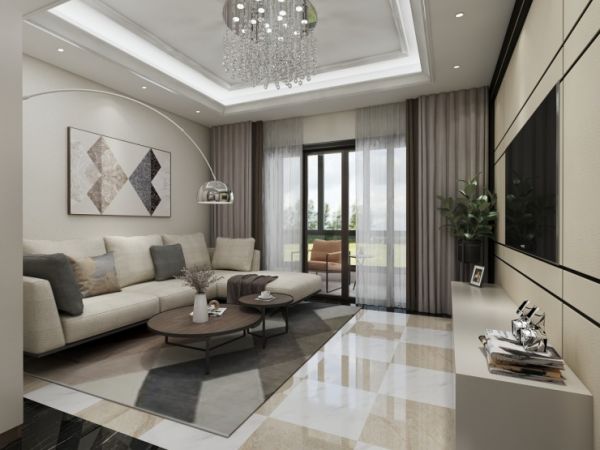 客厅依旧是白、灰、黑等色调的极简设计,一改传统设计华而不实的通病,设计在沙发材质的选择上投向了布艺沙发,沙发的柔软,地毯的厚重,大理石的光洁,与阳台外的美景互为一体。想象某个午后,温暖的阳光透过明亮的落地窗折射到黑白线条交互的电视背景墙上,漾出暖意洋洋,岂不惬意?