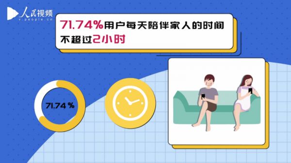 当代人有多依赖手机?日前,人民视频微博发起了一项调查,数据显示:71.8%的人每天使用手机超过8小时,71.16%的人表示不能离开手机超过15分钟,56.73%的人曾因为玩手机忘记规划好的事情,而每天陪家人时间超过2小时的只有不到20%。