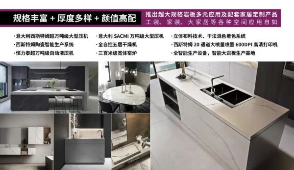 在保持岩板优良的物理性能上,还具有颜值高、性能优、应用广的特点,大大拓展了岩板的应用,从地面、墙体到各种家居定制,以及建筑外墙等户外领域,真正实现了全屋岩板家居定制。