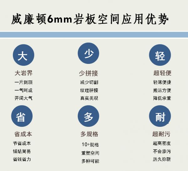 基于威廉顿【6mm岩板】卓越的防火、抗水、耐磨、耐腐蚀和维护成本低等特点,即使是用作建筑外立面装饰材料也是非常友好的选择。
