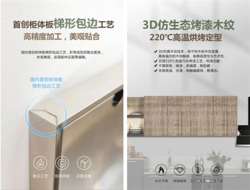 2021年,邦克对技术工艺进行全面焕新升级。为解决不断升级的用户需求,邦克不锈钢定制橱柜突破多项技术难题。比如,在国内首创柜体板“梯形包边工艺”,在对产品加工时充分做到一体成型,开创了柜体板无缝衔接的先河;运用220°C高温烘烤定性技术,最后实现新的设计并制造出3D仿生态烤漆木纹,让木材木纹也能极具艺术观赏性。