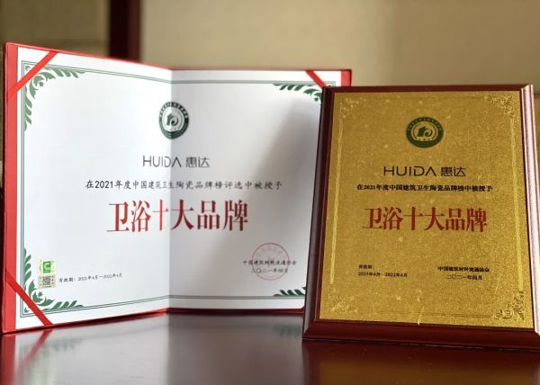 再传捷报!惠达卫浴荣获“卫浴十大品牌”殊荣!