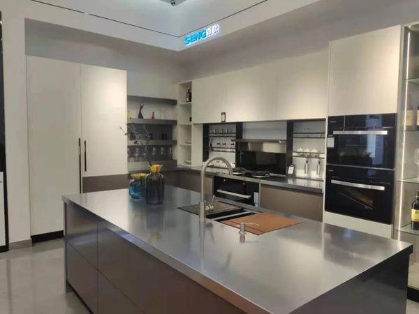 极简并不是简单,而是认真去思考后的精致。安徽广德店采用现代简约装修风格,多处采用不锈钢整体橱柜,用简约的设计语言,去除空间多余赘饰,更添加了几分时尚与大气。与森歌集成灶、灯光等元素的结合之下,让厨房尽显时尚、轻奢与科技感。