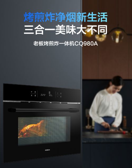 而此次发布的全新战略级新品烤煎炸一体机CQ980A集立体加热系统、八大专业烤、24道自动菜谱、油烟净化系统、净烟专业煎、脱脂空气炸等专业技术,实现烤煎炸三合一,满足用户多种烹饪需求。这无疑进一步彰显和夯实了老板电器强大科技的科技实力。
