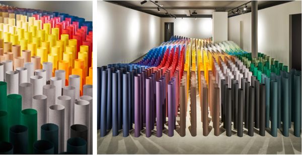 在中国陶瓷城展馆,结合色彩专区展示,设计装置主题为“色域热浪”,通过多种颜色的环保材料阵列出色彩的热浪,既寓意陶瓷的色彩如热浪,为人们生活带来更多有生命的色彩。这些环保的材料做成一个色彩阵列,像海浪一样,也可以打造和观展者的互动性。