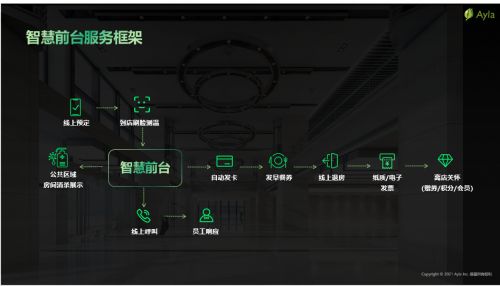 Ayla艾拉物联的酒店智能化管理涵盖前台、客房和公共区域、智慧酒店管理中心四大场景,帮助酒店开启精细化运营时代。