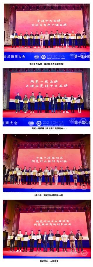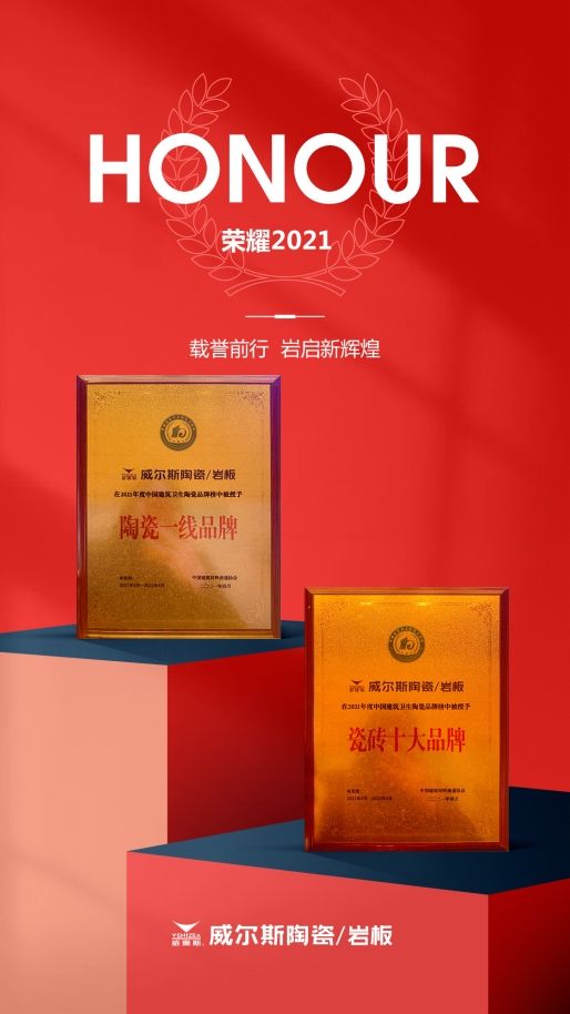 岩启新辉煌丨威尔斯陶瓷/岩板荣获2021行业十大品牌、一线品牌等多项大奖
