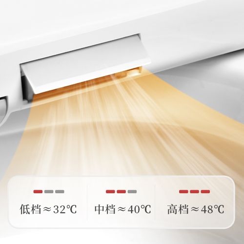 这款马桶盖的一大特色功能——暖风烘干,采用和松下相似的三档温度配置。0.3m³/min风量可谓刚刚好,吹得干爽,而不难受,像是一把小型风扇柔风吹拂烘干。三档温度分别约为32℃、40℃和48℃,能灵活应对不同季节和人群需求,真正做到便后一步到位,无需再用纸巾擦拭。