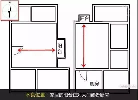 阳台也不可正对厨房,这也是一种“穿心”,会使得家中的团聚功能减弱,丈夫易外遇、老婆会红杏出墙,小孩不爱回家。