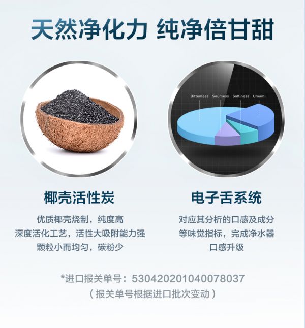 宝妈们除了担心宝宝喝水健康问题,对于水的口感也很挑剔。美的椰子智能净水器中的椰壳活性炭滤芯,选自斯里兰卡的天然椰壳制成,具有孔隙结构发达、比表面积大、吸附速度快、吸附容量高、易于再生、经久耐用等特点。同时搭配电子舌系统,对应其分析的口感及成分等味觉指标,完成净水器口感升级,带来纯净鲜活好水,口感健康清甜。