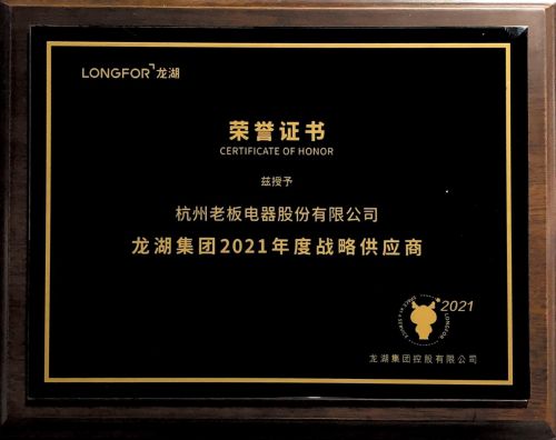 精诚合作,共赢未来 老板电器荣获“龙湖集团2021年度战略供应商”