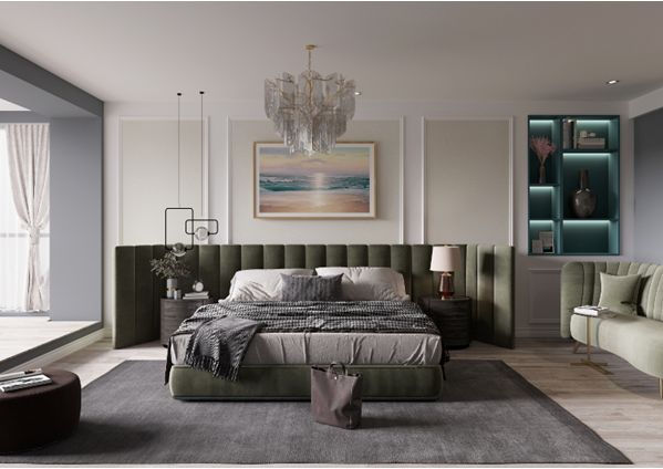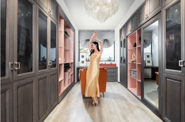 经历了高朋满座的纷繁与喧嚣,回到主卧,一字型衣柜拥有足够的收纳空间,稳重大气的设计融入了一丝浪漫情怀,沉稳中带有灵动的优美,柔和的色彩,使人能够安眠入睡;长衣区、短衣区、折叠区、小物件收纳区和杂物区井然有序;玻璃门板和开放格使卧室少了些沉闷感,多了丝灵动感,舒缓了思绪,开阔了心境。
