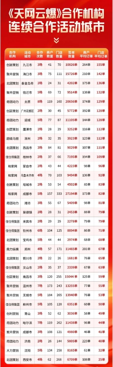 《天网云爆》模式以“一心只为给您增量”为服务核心,注重活动的实际效果收益,通过高质量的服务和高效率的结果为合作商户带来真正的业绩增长,凭借良好的口碑和专业化、数字化的运营能力为合作商家带来了可观的业绩,使得返场不断,形成口碑式传播。而活动的复购率和参与品牌的店均签单是衡量活动效果的最佳标准。