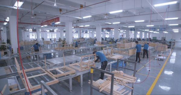 库斯家居拥有最先进的、最具规模的生产制造能力——南北生产基地共占地25万㎡,运用标准化生产模式的流水线,以及应用5S标准化管理体系。