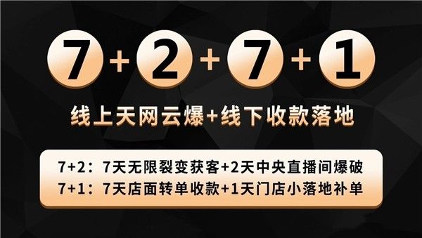 《7271》模式在充分发挥天网云爆线上数字化运营能力的同时,瞄准线下这一新的增长点,建立线上获客、线下获客、锁客、到店、转化、收款为一体的全环节销售解决方案。分别在“7+2”与“7+1”的活动进程中,调整获客方式的不同侧重,鼓励联盟品牌之间相互带单,联合做大流量池,以更高效的方式进行客户转化。