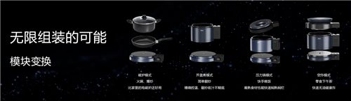 这个设问助产了Quick系列当中被美的称为其成立53年以来推出的首款烹饪“玩具”——QuickMore集成烹饪中心,整机采用模块化设计,可以更换组合上盖或机身来实现在电磁炉、煮锅、压力锅、空气炸锅四大形态中的切换。而且还可以通过IoT互联将美的美居APP内的新增功能及食谱下载到产品本体中,自定义本机专属功能。未来还可搭载集成搅拌上盖变身智能炒菜机,或配合专属透明玻璃锅实现可视化美食烹饪,拓展机器的更多玩法。