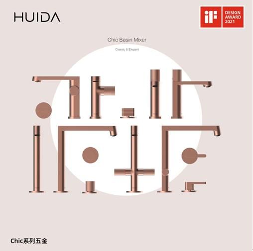 优雅与永恒的设计理念贯穿于整个惠达Chic系列,以几何元素为基本形式,截面造型为“D”形设计,贯穿每一件作品。正面造型圆润柔和优雅,背面造型提取硬朗方正的建筑风格,刚柔并济。多种镀层颜色、防指纹电镀工艺,让触摸不留痕,更赋予了工业风,极简风和轻奢风等不同风格的浴室空间。旋钮采用有触感的肌理防滑设计,旋转手感顺滑,舒适好用。整个Chic系列造型时尚经典、不过时、搭配度高、满足用户不同使用和审美需求等多重优点,获得诸多好评。