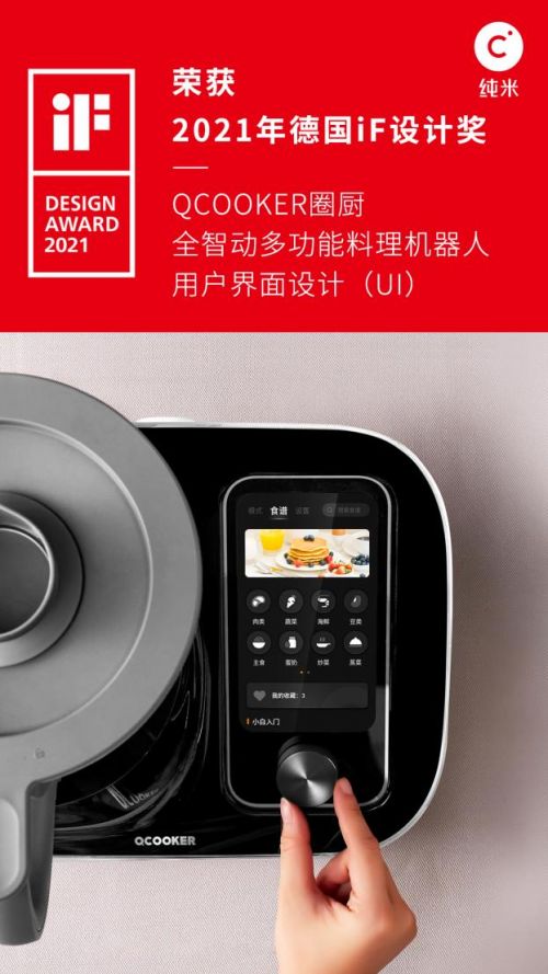 TOKIT 厨几AI多功能料理机所获得的(UX)用户体验设计奖和QCOOKER圈厨全智动多功能料理机器人所获得的(UI)用户界面设计奖在纯米都属首次,它们切实体现了纯米在用户体验上得天独厚的天赋和长久的积累。