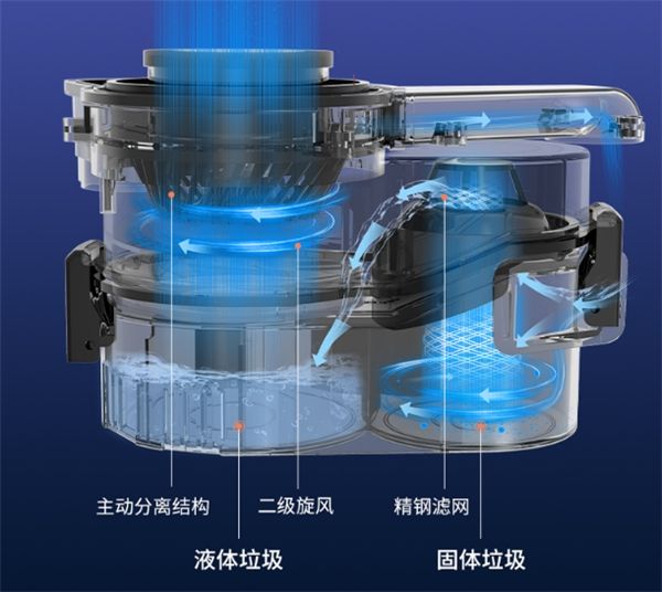 同时春花还有着自己的专利技术——多级双阶过滤系统。它能够让春花智能洗地机自动分离干湿垃圾,固体进入尘盒、液体进入污水箱,令水尘气高效分离。而且这套过滤系统滤材均可水洗清洁,无需二次购买损耗组件,终身无耗材。让你只需要付出一笔机器的钱就能无需二次消费的简单搞定地面清洁。