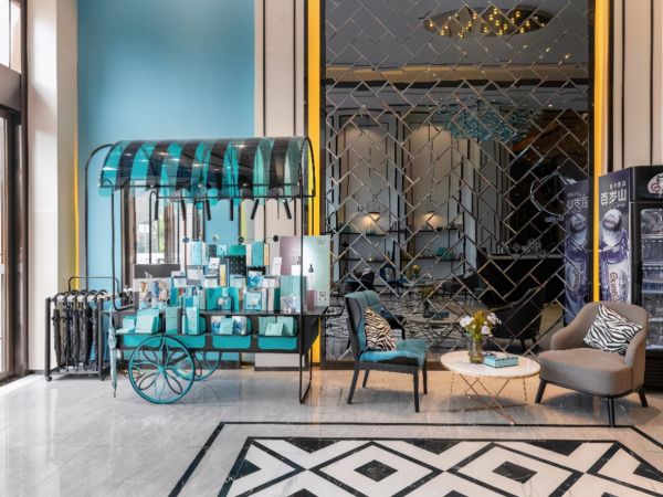 希岸Deluxe酒店的大堂可谓是“金屋藏娇”,处处充满惊喜。在大堂的一处有个开放的态度生活美学馆,虽然面积不大,但是货架上的精致生活品琳琅满目,包装也是选取了希岸蓝,无处不展示着精致生活的态度。