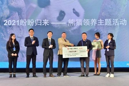 成都大熊猫繁育研究基地副主任兰景超先生发言感谢盼盼的义举,并呼吁更多爱心企业和民众加入到保护大熊猫,保护生物多样性,共筑美好家园的行列。