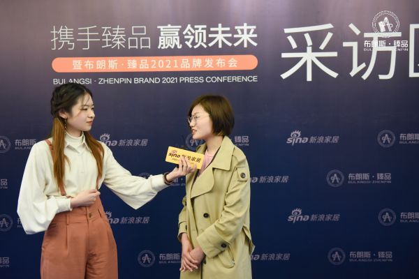 【新浪记者】:各位观众朋友们,大家好!我是新浪家居软装媒体事业部记者窦文雪。我现在所在的位置是布朗斯·臻品2021品牌发布会的现场,我们非常荣幸地邀请到布朗斯·臻品山东东营的经销商王丽丽女士接受我们的采访。王女士,您好!您刚才看了我们布朗斯·臻品新的展厅,您看完展厅之后,您的感受是什么呢?有没有特别喜欢的产品呢?