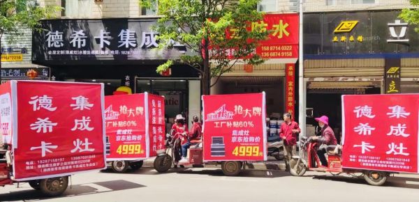此次活动,德希卡云南团队亲赴禄劝店,在活动前两天协助以电话方式、扫楼等方式邀请所有新老客户参加,现场演示道具准备齐全,产品体验区、洽谈区、礼品区陈列井然,升级宣传与卡通门。在基础宣传之上,租用多辆广告宣传车在禄劝城区全天候轮番式密集轰炸,不仅让“品牌升级,工厂直补”活动广而告之,更是将德希卡集成灶品牌进行了大幅度的形象曝光,以简单明了的方式,向所有的新老客户说明,品牌升级的原因及优势。