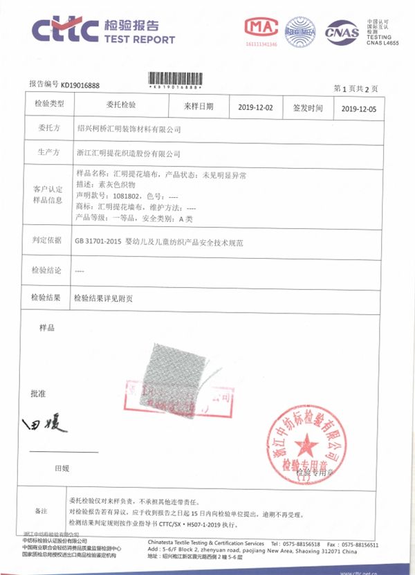 汇明A+墙布发展至今,一直以坚持环保健康生产为核心导力,向社会家庭输出更健康更环保的墙布产品。在购买家居类产品时,也应该多多关注产品的检测报告等文件证明,为生活多加一份保障。