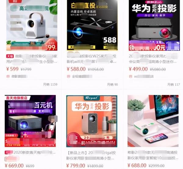 在淘宝、拼多多上搜索投影仪经常会看到一些有点熟悉又陌生的投影仪,像什么华为芯投影仪、海思芯投影仪、微麦、微影、轰天炮、瑞视达、瑞格尔,还有什么王一博同款投影仪等等