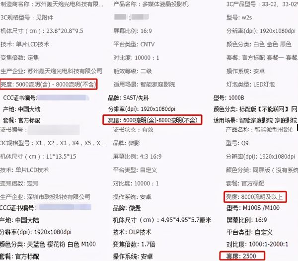 3、亮度虚标,最重要参数如此随便写,看看品牌投影仪上千元的爱普生、当贝等就知道了