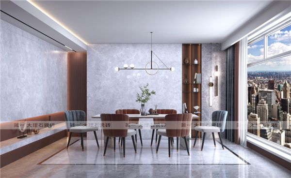 【李志豪】:“自然•共生”是简一一直在引导的设计理念,也是开发的重要核心方向。可持续的设计是指从材料到空间的整体表达能给用户更健康、绿色、环保、舒适的空间环境。从开创大理石瓷砖品类以来,一直坚持用科技来还原大理石的天然美感,这两年我们一直在技术攻关,独创了0.5毫米密缝连纹的技术,让整个空间真正体现大理石纹理开阔大气的美感,而不会有缝隙的破坏。