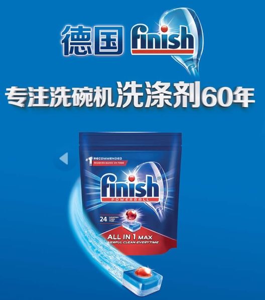 截至目前finish品牌已拥有60多年历史,凭借以上多种功能,其洗碗机洗涤剂产品深受全球多个国家和地区消费者的信赖。其中finish洗碗机专用多效合一洗碗块因具备软化水质作用,能够让洗碗机和餐具摆脱水垢,更是被中国洗碗机用户推崇。因此想要餐具变干净且摆脱水垢,就用finish洗碗机洗涤剂。
