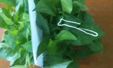 首先,咱们找来一盆常见小绿萝,用A4纸把茂密的绿叶间隔成两边。