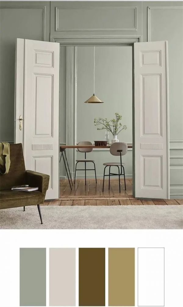 想体验大自然的纯粹,这两个颜色的搭配极为合适,作为同色系组合,它能让整个空间的层次感瞬间提升。浅灰绿色墙壁搭配白色家具,再添上原木色地板,一股清新劲儿油然而生。