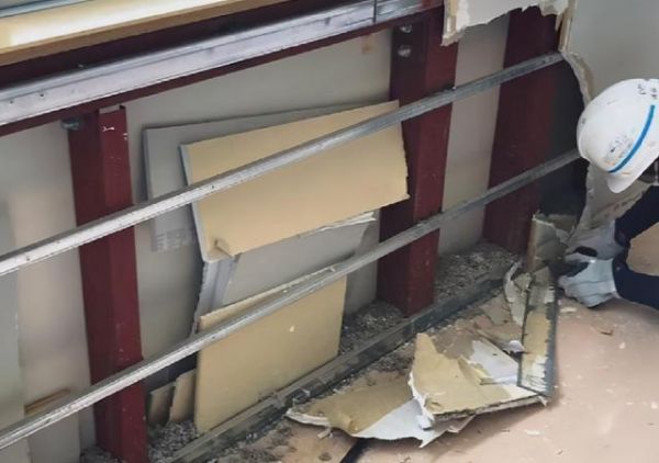 不得已,学校请来了专业的维修公司对石川校区的漏雨建筑进行全面的维修,鉴于常年漏雨的教学楼墙面已经彻底的损毁,维修公司的人就按照正常的维修程序,准备拆掉表面已经潮湿发霉的墙面,给墙体重新做防水处理。
