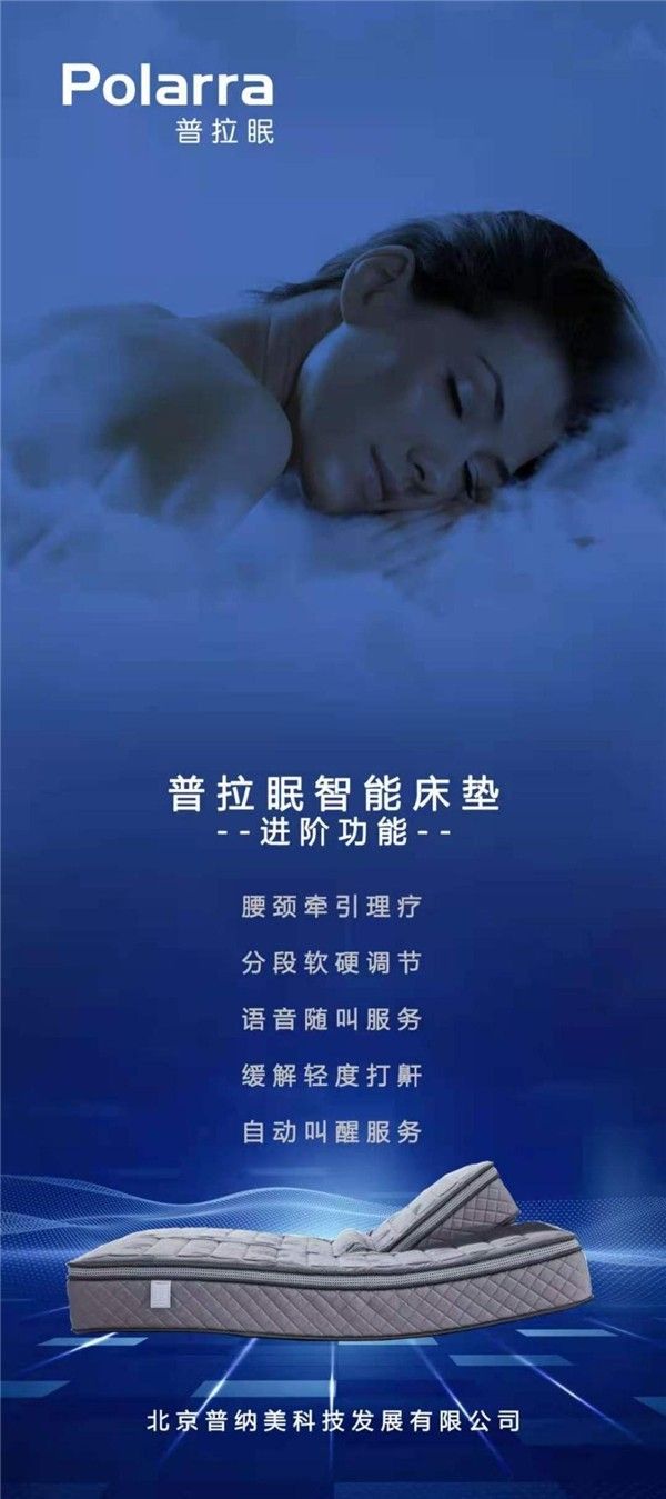 除了贴心的监测功能外,普拉眠智能床垫拥有诸多进阶功能,如在你感觉身体疲惫之后,帮助你进行腰颈牵引理疗,放松身体,缓解压力;语音随叫服务,只需动动嘴就能达成需求,带来更为自然亲近的人际交互体验,让科技更有人情味;自动叫醒服务,无需再被闹钟声从梦中惊醒,而是阶段式温柔唤醒,让大脑和身体慢慢“清醒”。