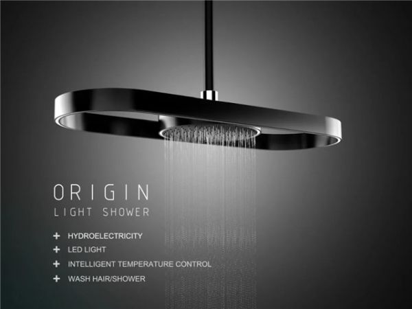 Origin系列淋浴花洒秉承中宇始终如一的环保理念,多项核心科技加持。水力发电技术的运用,实现了以水能为动力开启顶部LED灯光;而温度感应系统则能实时反映水温状态,冷色灯光表示冷水,暖色灯光表示热水,节能更安全。外型纤薄简约,弧形线条彰显时尚动感,质感哑黑搭配led廓形灯,尽享轻奢高级范。