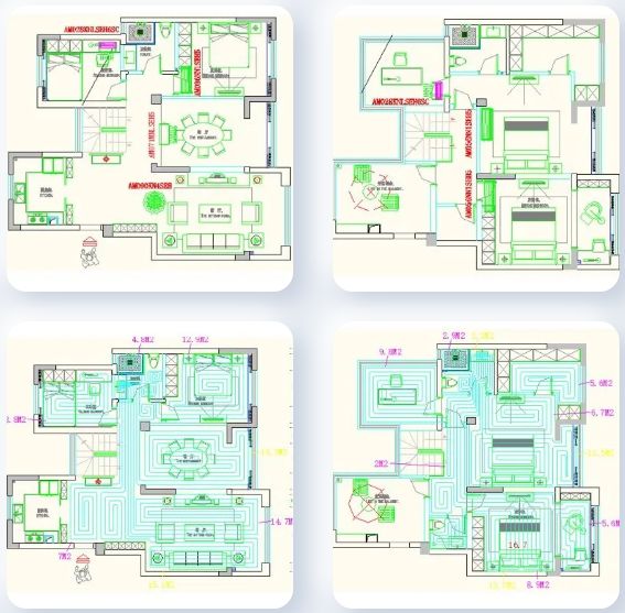 一楼配置1台360变频嵌入式产品在客厅,Samsung WindFree™沐风嵌入式单向气流产品在主卧,2台超薄型静音风管机分别安置在餐厅、次卧。二楼主卧及次卧配置2台Samsung WindFree™沐风嵌入式单向气流产品,书房则安装1台超薄型静音风管机。这样家里主要活动区域都可以满足制冷,实现夏季舒适温度,地暖选择全屋铺设,让南方的冬季享受地热的温暖。