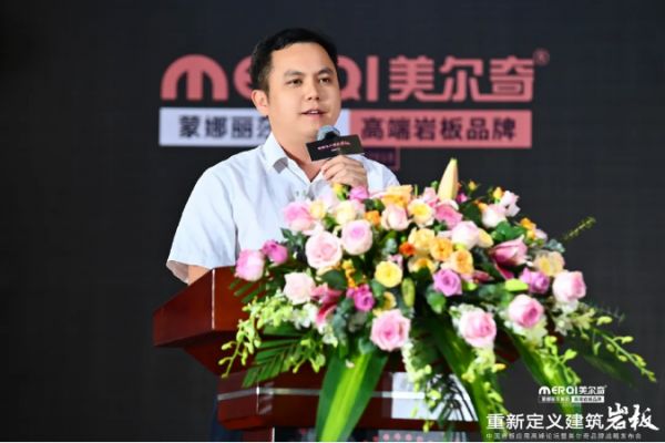 “美尔奇定位高端岩板,以重新定义的姿态抢占建筑装饰行业‘岩板’市场,系统全面推进‘建筑岩板’。”在发布会上,蒙娜丽莎集团全资子公司广东绿屋建筑科技工程有限公司总经理蒙政强发表主题演讲,从营销战略和市场布局的角度出发,解读蒙娜丽莎集团启动美尔奇品牌的重要意义,并深度剖析美尔奇的品牌渊源和品牌内涵。